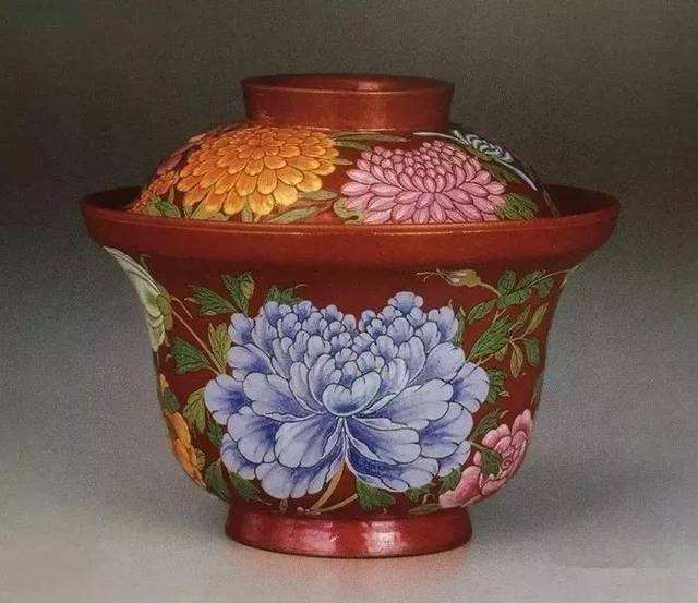 碗的外壁與蓋面皆用琺瑯彩料繪以梅花、山茶花、荷花和竹子等繪畫飾紋。