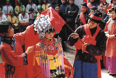但大禮中,不管家境如何,茶葉、龍鳳餅、棗、花生等一些象征性禮品,也是不可缺少的。茶葉當(dāng)然還帶有“從一”的含義。女方收到男家的彩禮以后,隨即也要送嫁妝和陪奩,經(jīng)過這些程序以后,才算完聘。女方的嫁妝也隨家庭經(jīng)濟(jì)條件而有多寡,但不管怎樣,一對茶葉罐和梳妝盒是省不掉的。