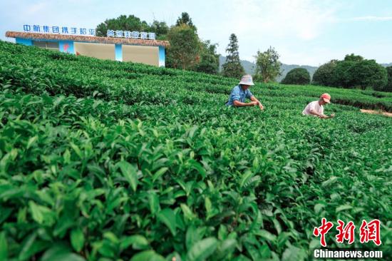 10月28日,廣西昭平縣江口村生態(tài)茶示范基地內(nèi),茶農(nóng)在采摘茶葉。該茶園基地總面積86畝,由中航集團幫扶援建,以生產(chǎn)“生態(tài)有機茶”為發(fā)展定位。