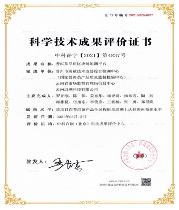 日前,第三方專業(yè)科技成果評價機構依據科技部《科學技術評價辦法》,組織同行專家對國家普洱茶產品質量監(jiān)督檢驗中心完成的“普洱茶品質區(qū)塊鏈追溯平臺”項目科技成果開展評價。