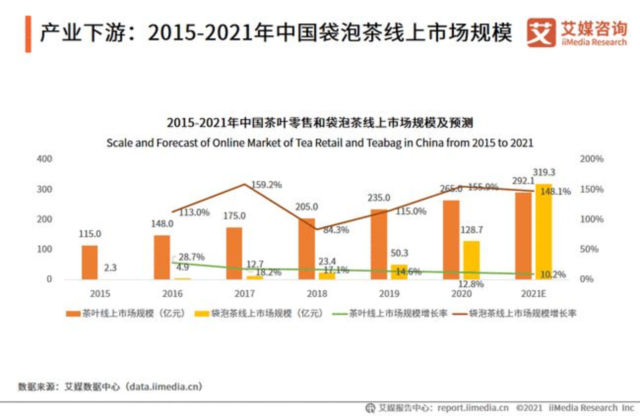 產(chǎn)業(yè)下游:2015-2021年中國袋泡茶線上市場規(guī)模