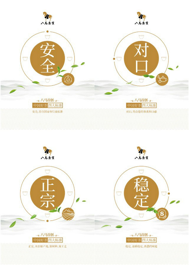 為保證茶葉品質(zhì)的穩(wěn)定與安全,八馬茶業(yè)不僅首創(chuàng)性提出中國(guó)好茶四大標(biāo)準(zhǔn):安全、對(duì)口、正宗、穩(wěn)定。從茶葉種植、加工,到物流、銷(xiāo)售、管理,八馬茶業(yè)的標(biāo)準(zhǔn)化體系超過(guò)30項(xiàng),在服務(wù)領(lǐng)域規(guī)范了110多項(xiàng)統(tǒng)一標(biāo)準(zhǔn),并建立全程質(zhì)量安全追溯系統(tǒng),一旦產(chǎn)品出現(xiàn)問(wèn)題,責(zé)任可追究,產(chǎn)品可召回。2019年,在中國(guó)好茶的標(biāo)準(zhǔn)上,八馬茶業(yè)再度建立三大選品標(biāo)準(zhǔn):名家之作、非遺技藝、黃金產(chǎn)區(qū)。