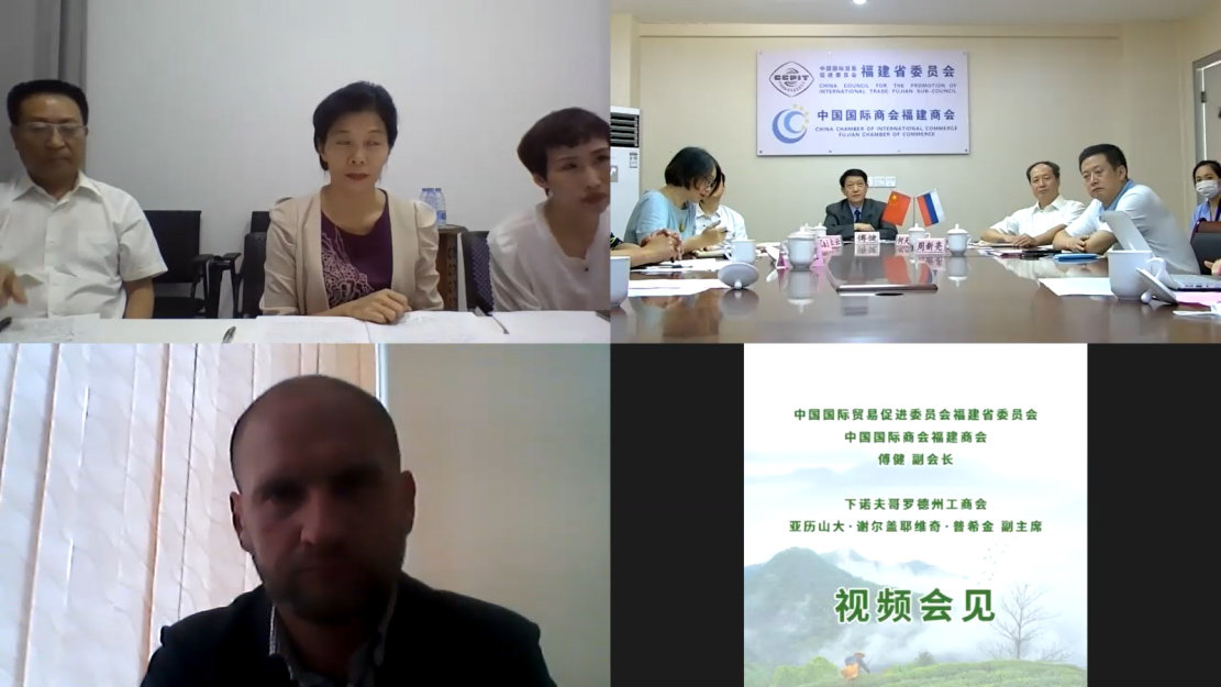 福建省貿(mào)促會(huì)與俄羅斯下諾夫哥羅德州工商會(huì)視頻會(huì)見現(xiàn)場