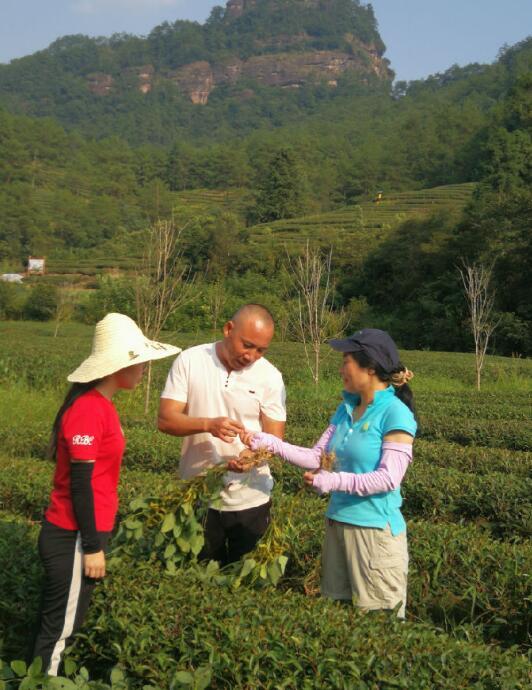 為探索茶園高效、生態(tài)、環(huán)保建設(shè)模式,福建農(nóng)林大學(xué)根系生物學(xué)研究中心主任廖紅與團(tuán)隊(duì)走進(jìn)星村鎮(zhèn),把高效豆科作物提高茶樹(shù)的養(yǎng)分利用效率,并達(dá)到減肥增效等科研成果,運(yùn)用到茶葉基地建設(shè),以提高茶葉的產(chǎn)量及質(zhì)量。廖紅教授認(rèn)為,茶豆套種作用明顯,大豆可產(chǎn)生根瘤菌,具有固氮作用,增加土壤肥力,茶園里套種大豆可少下或不下氮肥。同時(shí),金龜子、蚜蟲等更喜歡大豆葉子,從而減少茶樹(shù)蟲害。還能增加茶葉產(chǎn)量,實(shí)驗(yàn)表明,靠近大豆的茶樹(shù)每平方米可長(zhǎng)出190個(gè)芽梢數(shù),比沒(méi)有靠近大豆的茶樹(shù)多出一倍。