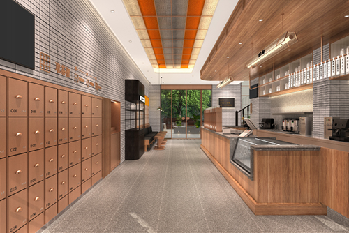 水吧區(qū)域的木紋理與天然石材構(gòu)造傳統(tǒng)茶樓氛圍,以新延舊的方式來設(shè)計(jì)水吧區(qū)域。